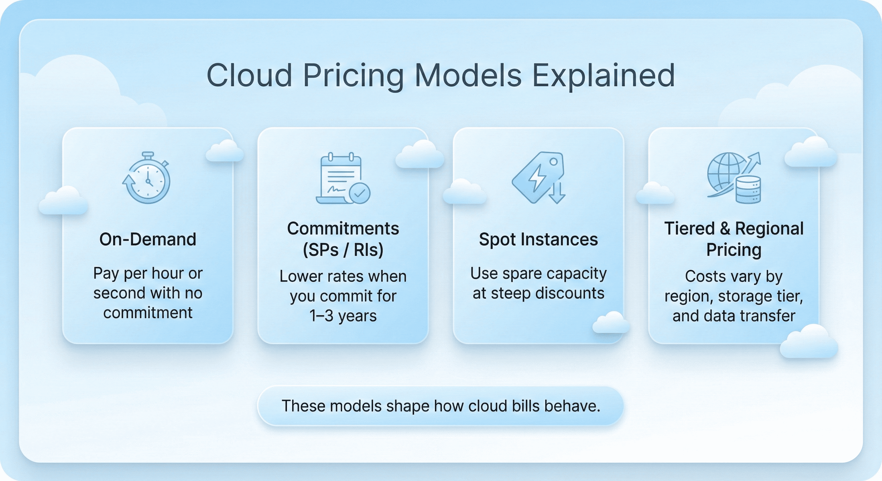 Most cloud bills are shaped by several pricing models.